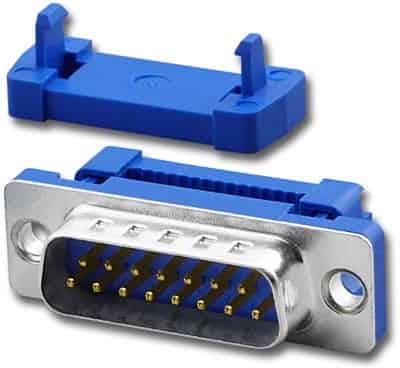 IDC Male Metal Shell - 9 Pin - Plastic Strain Relief - Blue Plastic.