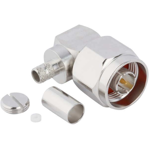 RF Connector Type N Right Angle Crimp Plug Optimized for LMR-195 50 Ohm