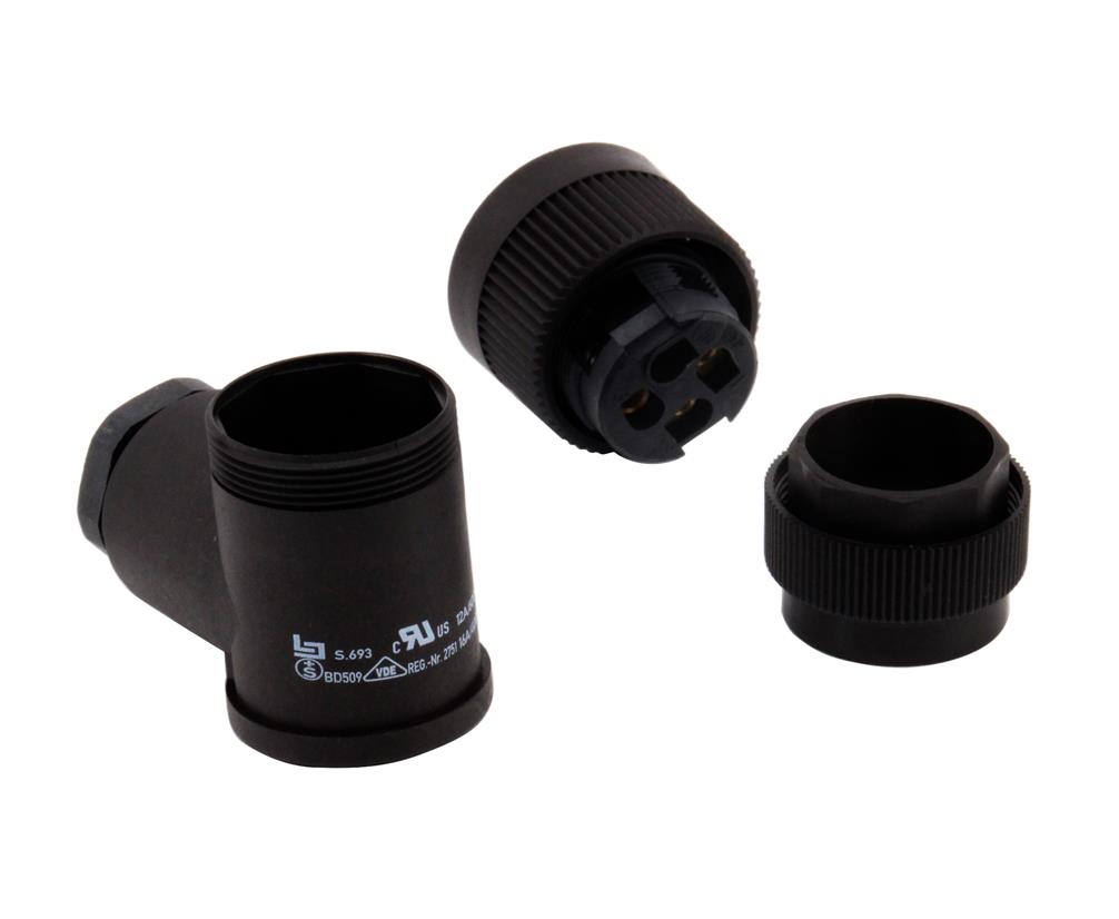 RD24 Female angled connector, Contacts: 3+PE, 10.0-12.0mm, unshielded, screw clamp, IP67, ...
