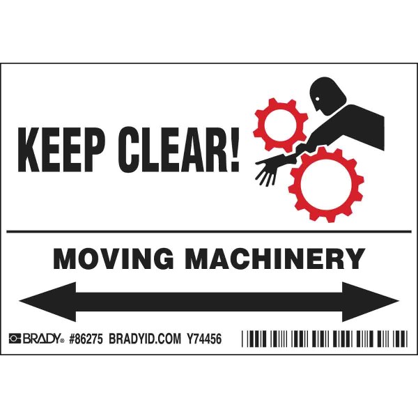 KEEP CLEAR! MOVING MACHINERY Label - 3.5 in H x 5 in W - Polyester - Pack of 5 Labels - Bl...