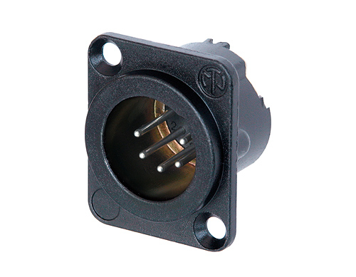 DLX Series - 5 pole male receptacle - solder cups - black metal housing - silver contacts