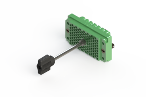 516 Series Rack & Panel Connector with 90 empty contact slots in a Plug style connector. The insulator is Grey PC withno cover and an actuating screw and polarizing hardware.
