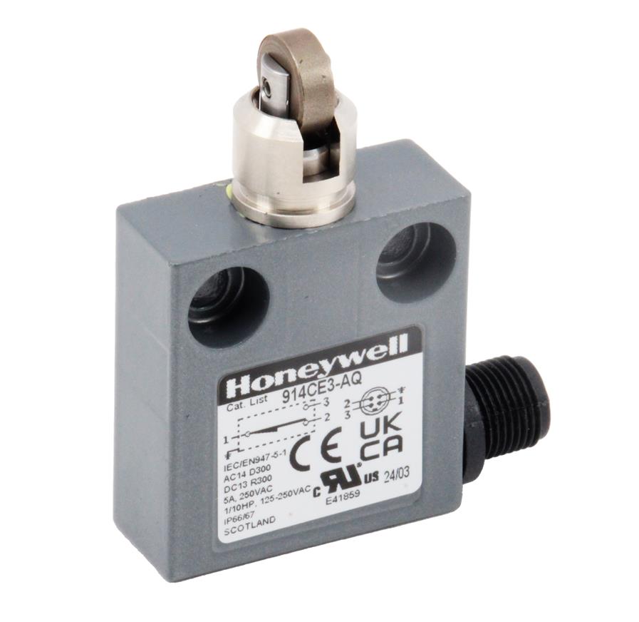 HoneywellMiniature Enclosed Switches Series 914CE: Top Roller Plunger; 1NC 1NO SPDT Snap Action; 4-Pin AC Micro-Connector .. see full description
