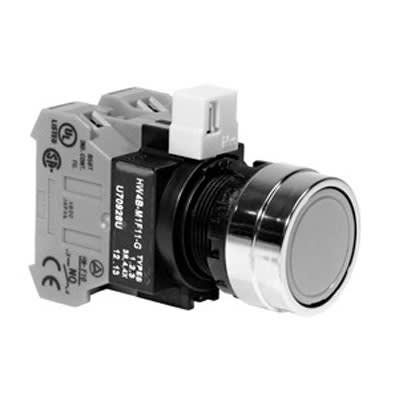 Pushbutton Switch - SPST - On-Mom - 2NO - HW Series - Metal Bezel - Flush Actuator - Non-I...