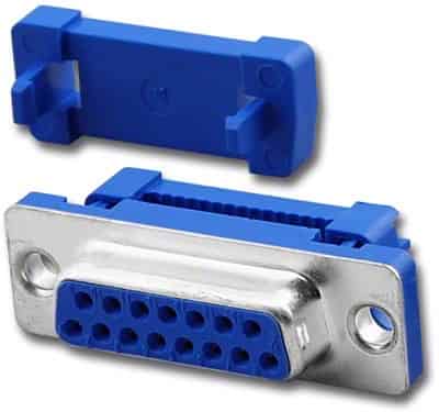 IDC Female Metal Shell - 9 Pin - Plastic Strain Relief - Blue.