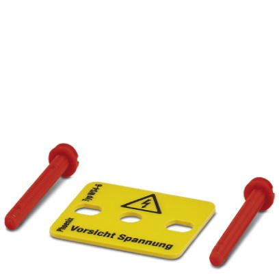 Warning plate - with 2 plastic screws - across 3 terminal blocks - pitch 6 mm