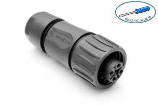 3+PE Female straight cable connector with internal cable clamping and clamping ring. Field...