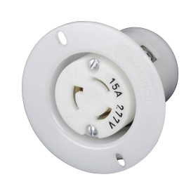 15A 277V 2P 3W (L7-15R) Locking Flanged Outlet - White Body in a Black Housing