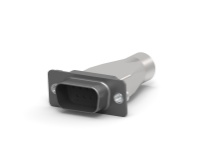 This plug from TE’s HDP-20 Crimp Snap-In Contact Connectors series features a zinc plated ...
