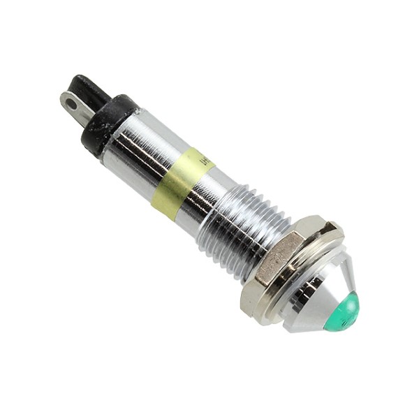 677 LED PMI 0.283" Green, Protruding, 6 VDC, Solder Trmls, Chrome